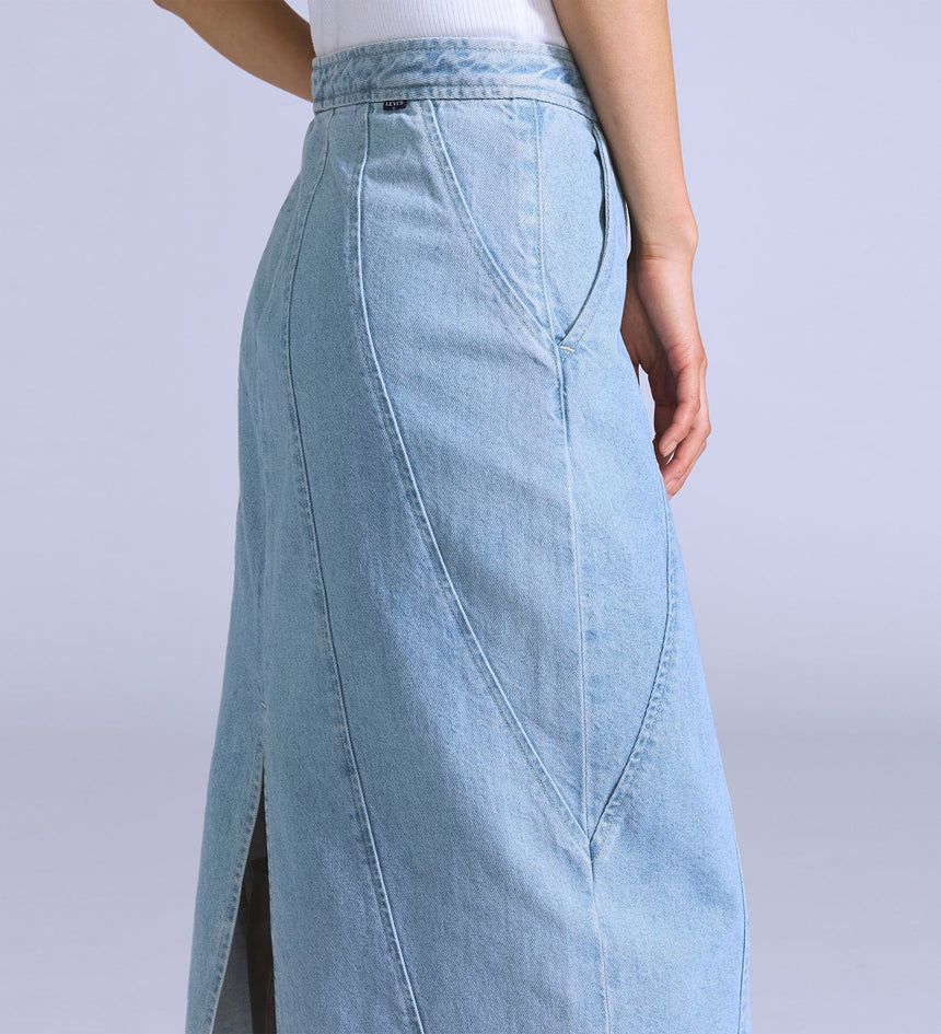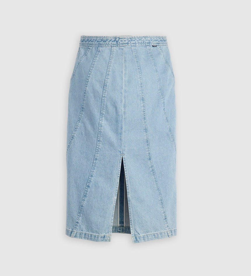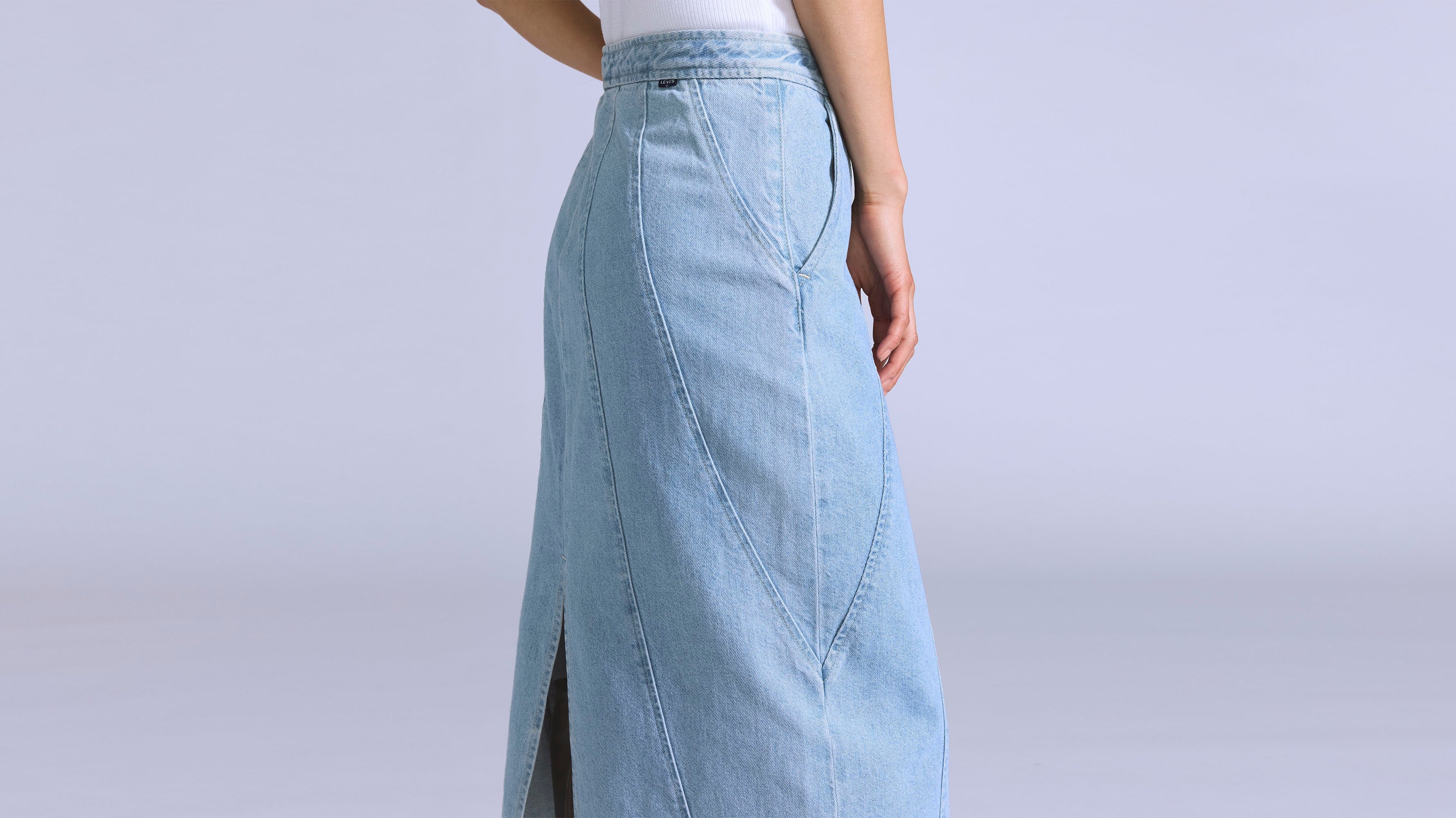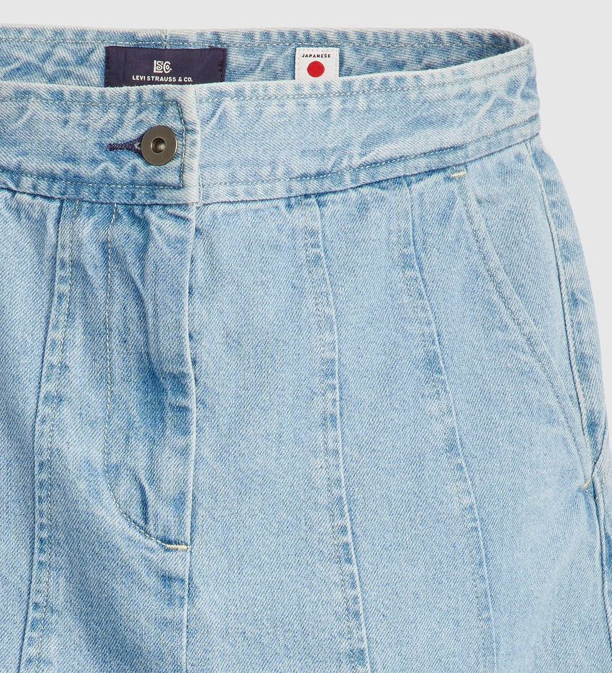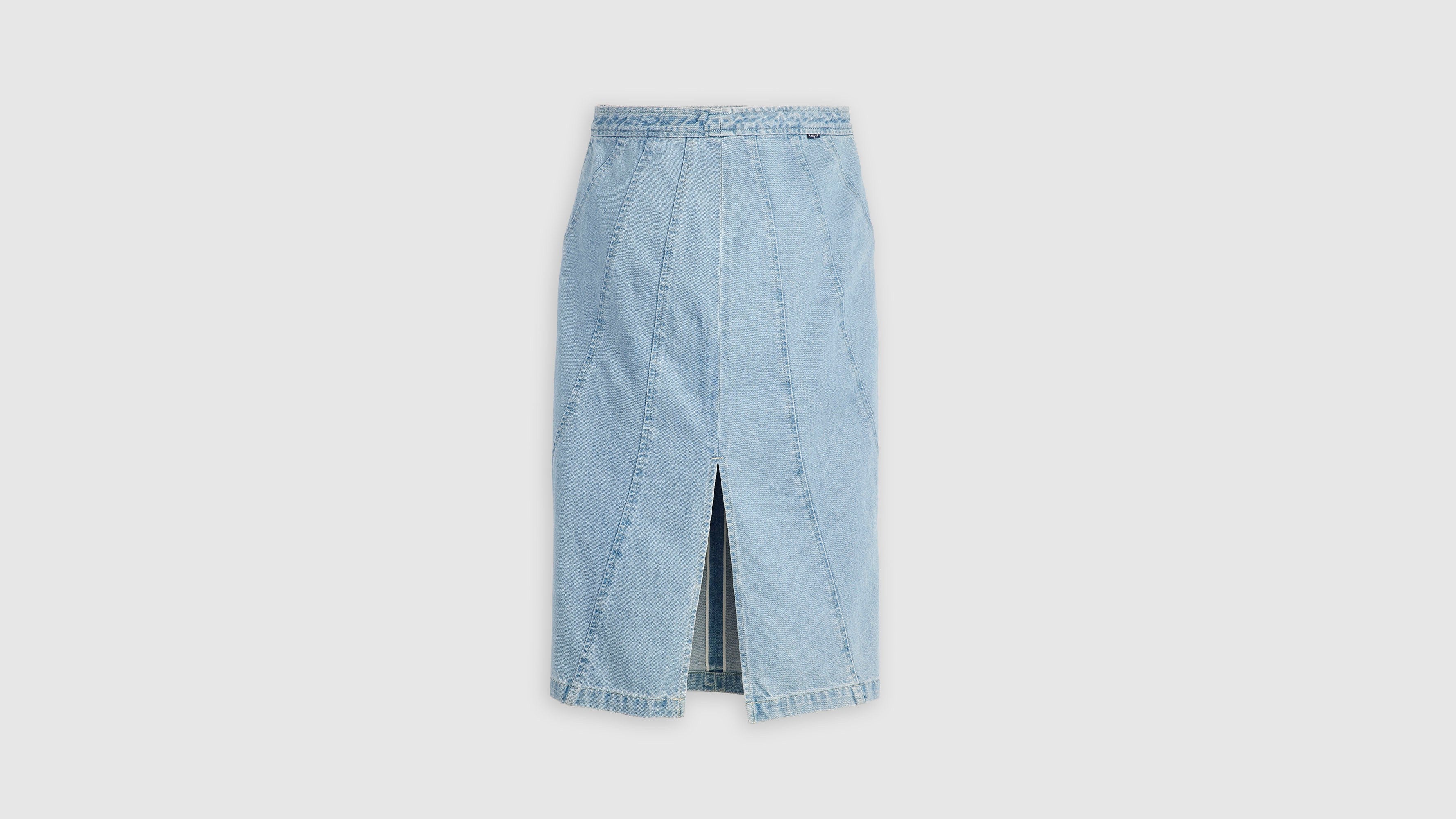 Levi's® Blue Tab™ is an elevated collection that infuses our iconic denim heritage with traditional craftsmanship. Expect thoughtful details, sharp tailoring and finishes that are rich with character. This is an entirely new shape of Blue. Add a little structure with our Seamed Skirt. This piece features a high rise, a perfect midi length and is finished with ultra-flattering seam...