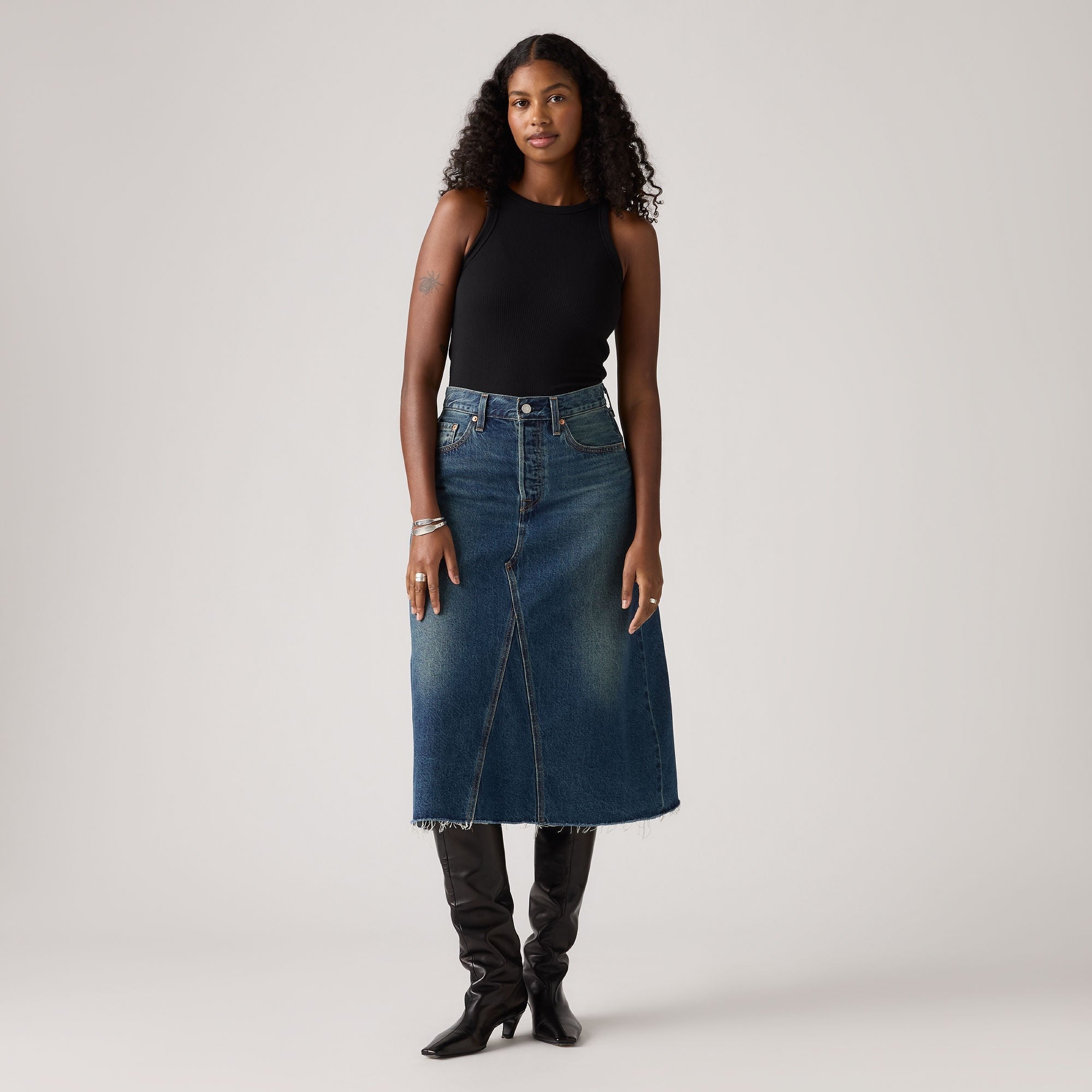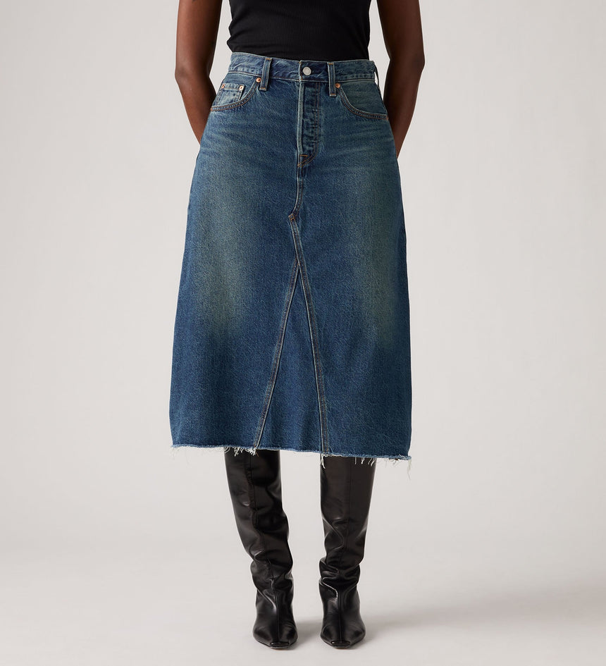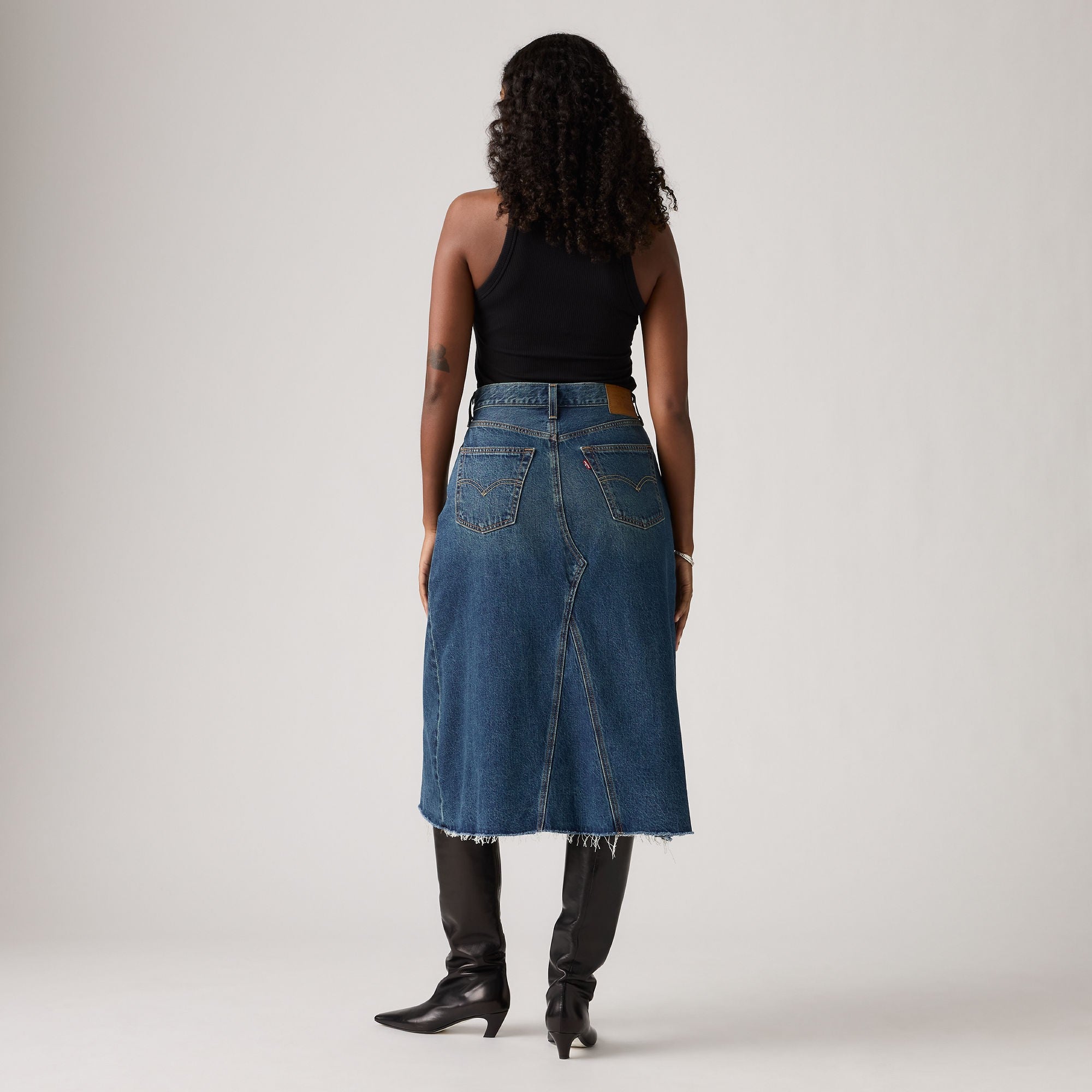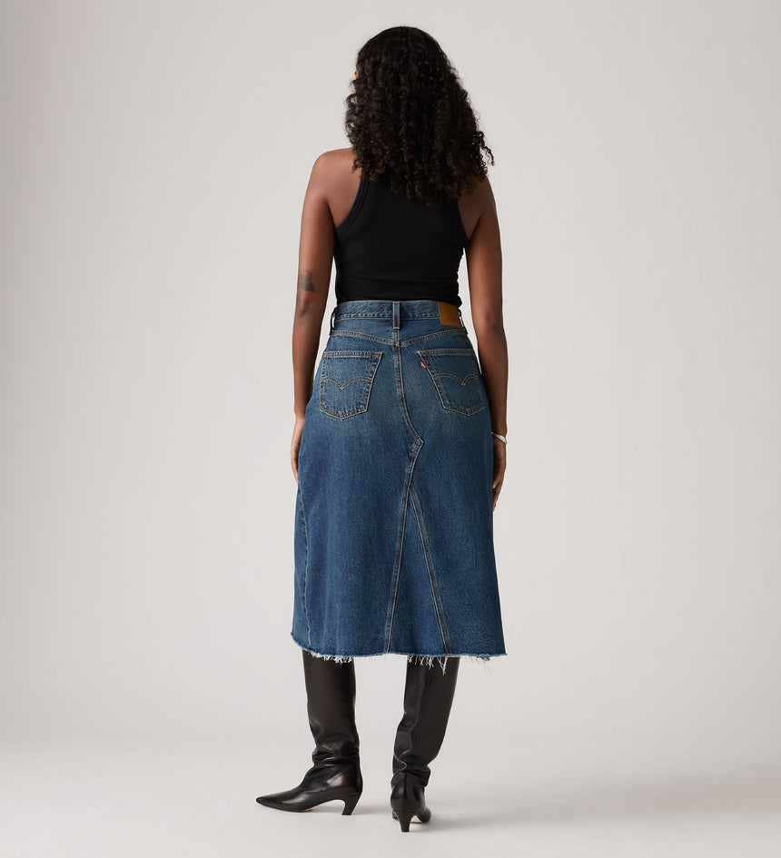 เปลี่ยนกางเกงยีนส์ธรรมดาๆ ของคุณให้กลายเป็นกระโปรงเดคอนทรงเอไลน์เอวสูงของเรา เราตัดเย็บกระโปรงตัวนี้ด้วยทรงเอวสูงแบบสบายๆ ทรงเอไลน์มิดิที่เข้ารูป และดีไซน์เดนิมแบบดีสตรัท