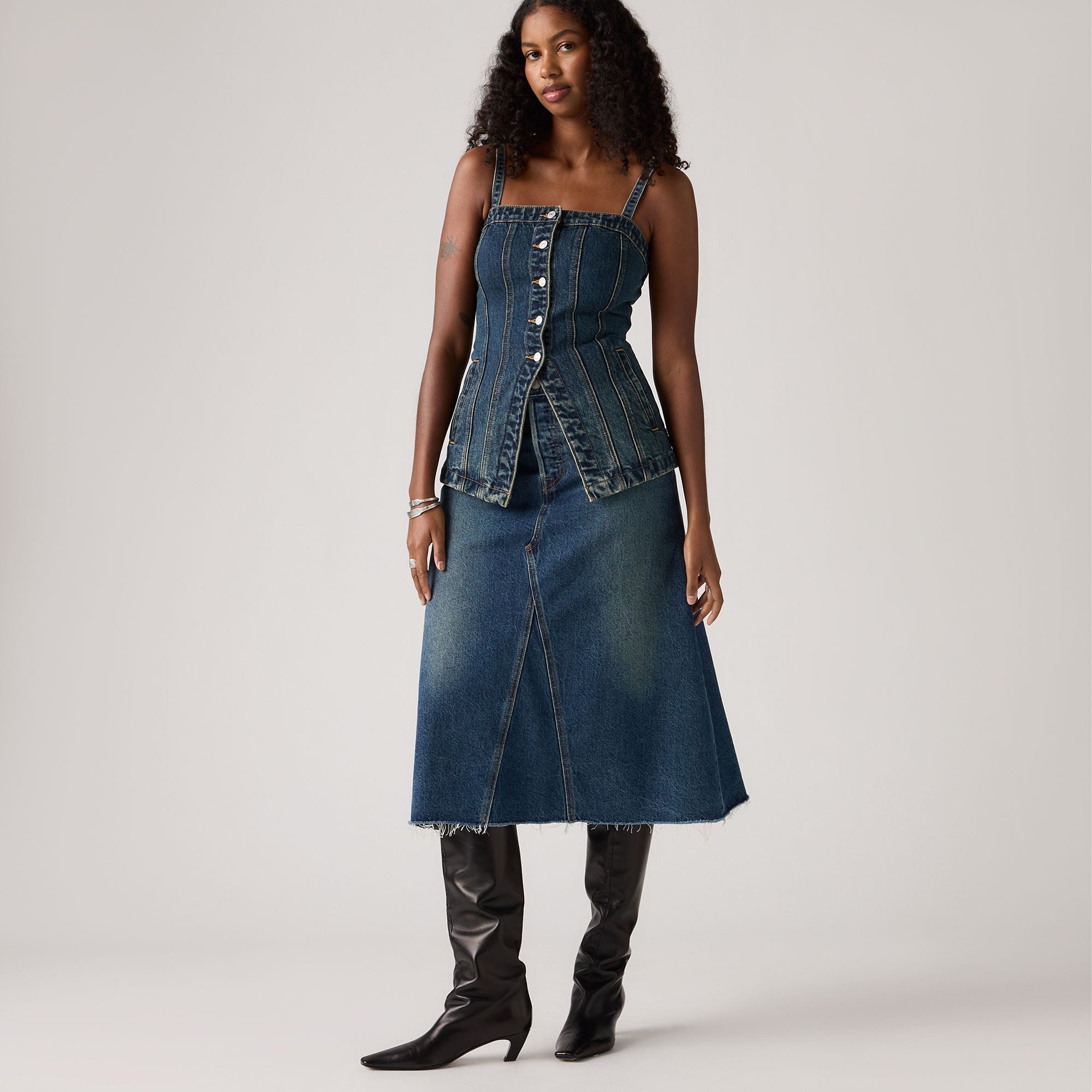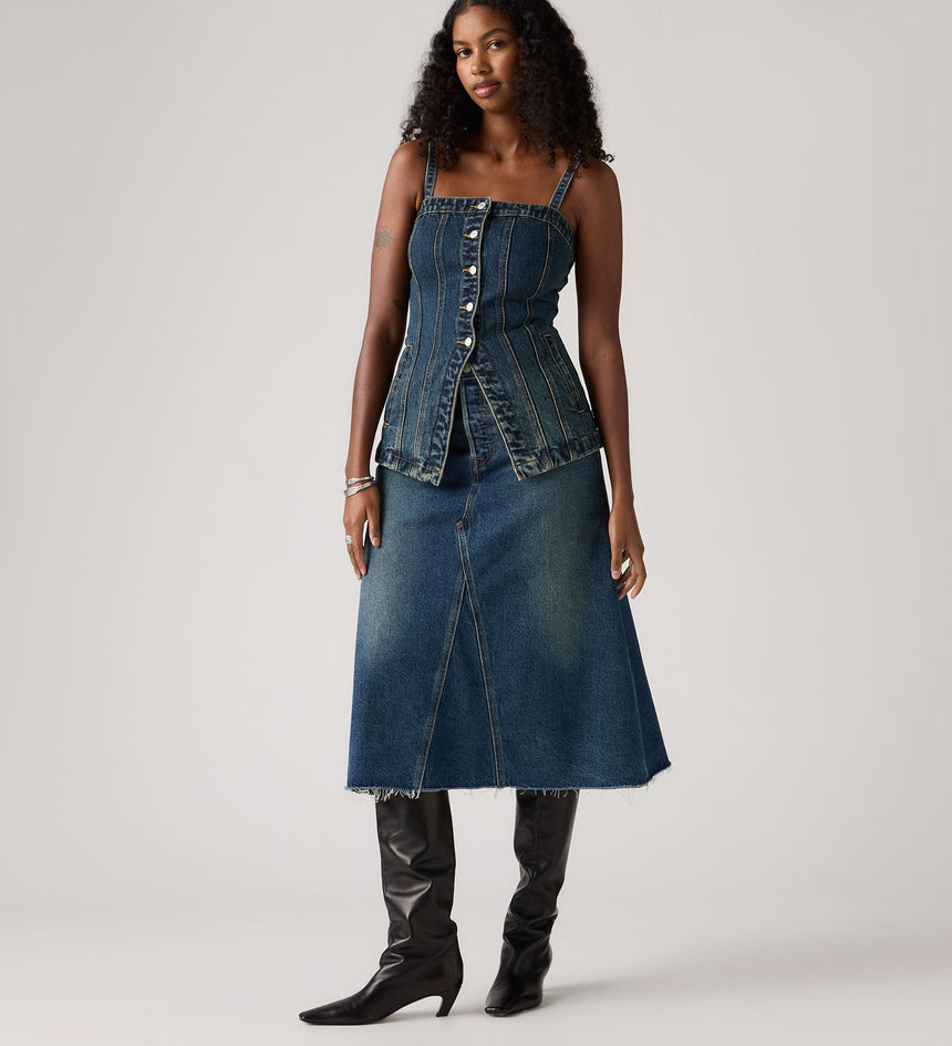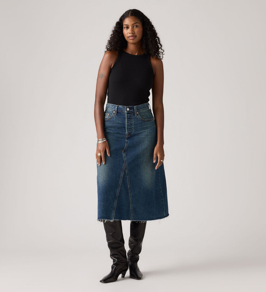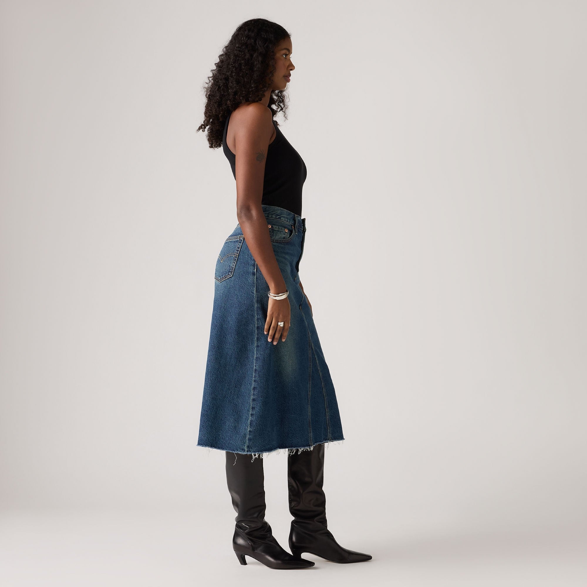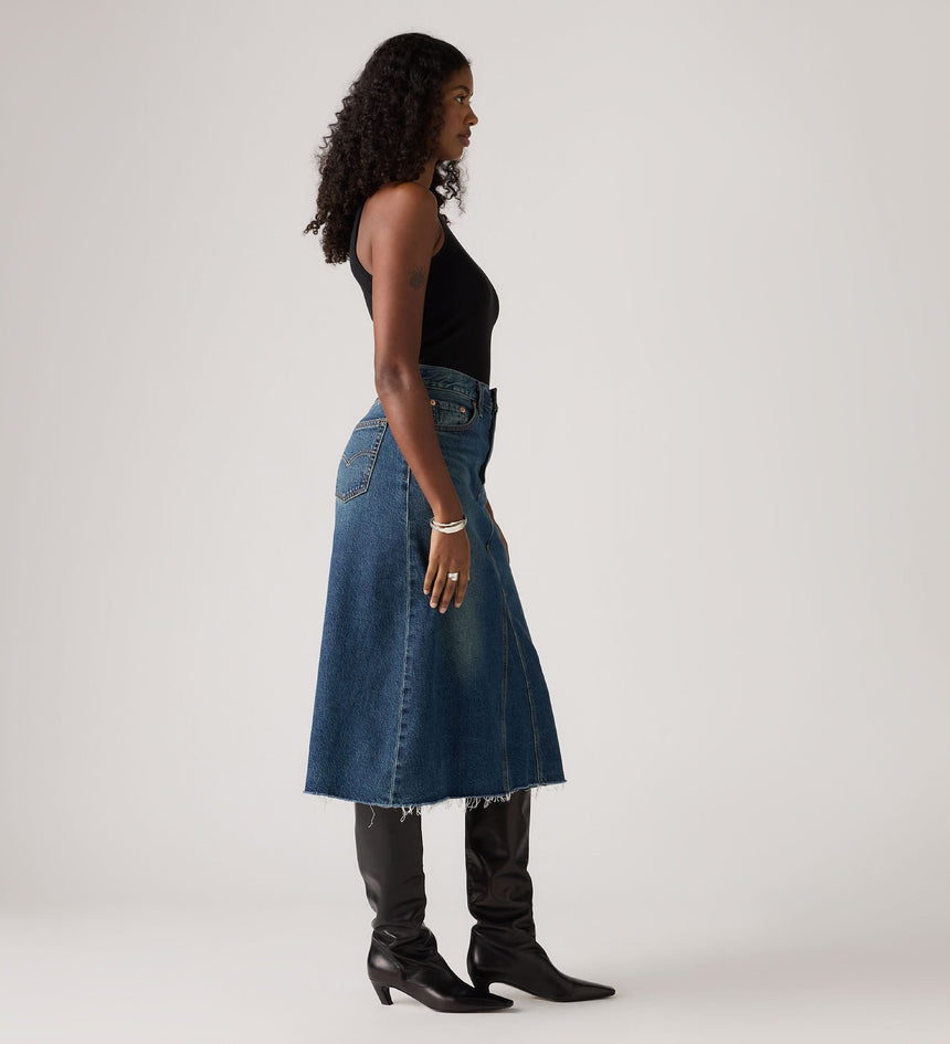 เปลี่ยนกางเกงยีนส์ธรรมดาๆ ของคุณให้กลายเป็นกระโปรงเดคอนทรงเอไลน์เอวสูงของเรา เราตัดเย็บกระโปรงตัวนี้ด้วยทรงเอวสูงแบบสบายๆ ทรงเอไลน์มิดิที่เข้ารูป และดีไซน์เดนิมแบบดีสตรัท