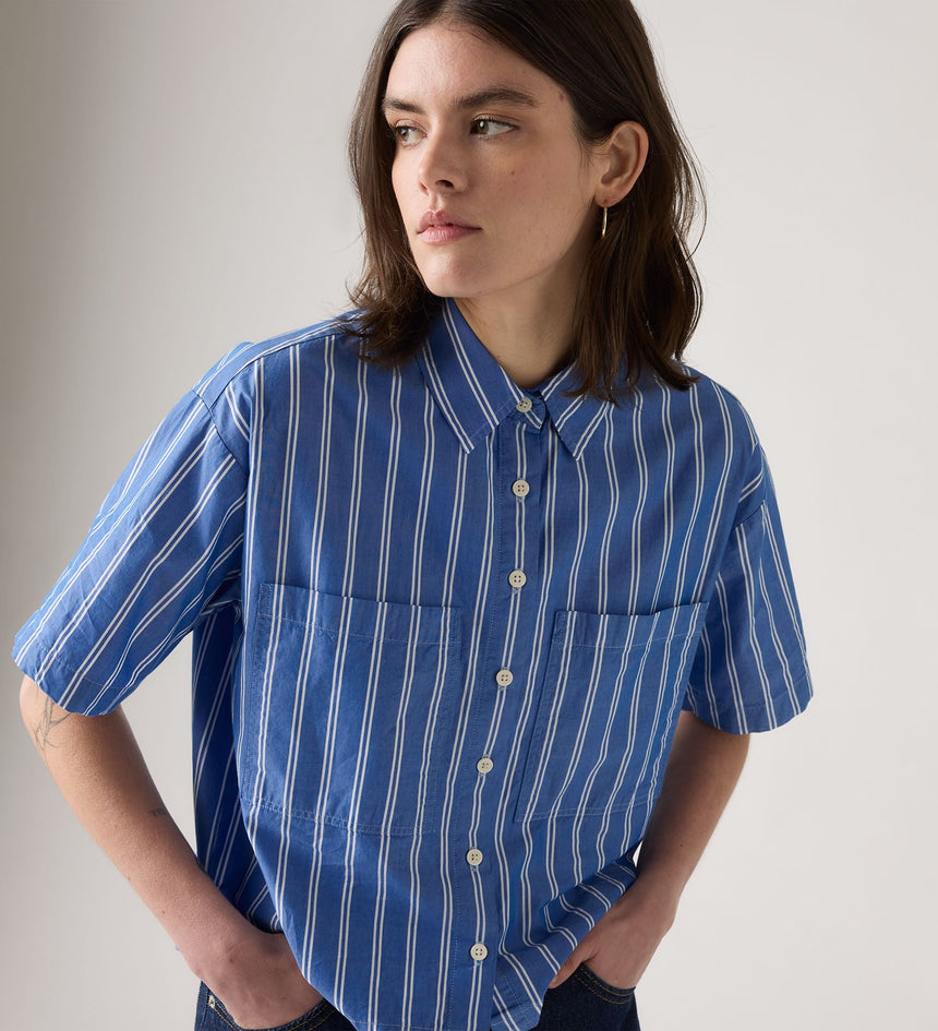 Our Harlie Short-Sleeve Cropped Shirt is short and sweet, just how we like it. Cut with a cropped, relaxed fit, it features a classic button-up front and two patch pockets.