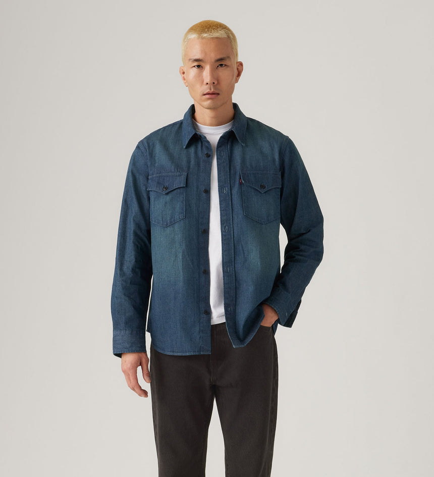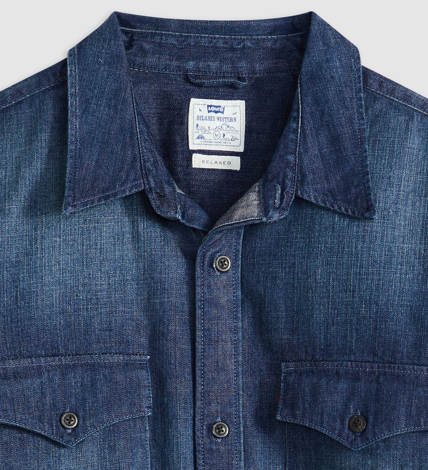 Cowboy boots and chaps not included. As a brand with deep roots in the American West, there's nothing we love more than this rugged-yet-put-together Relaxed Western Shirt. True to the classic, this essential features a distinctive snap placket, pointed yoke and curved hem. Pair it with your favorite blue jeans for the iconic denim-on-denim look, or size up and wear...