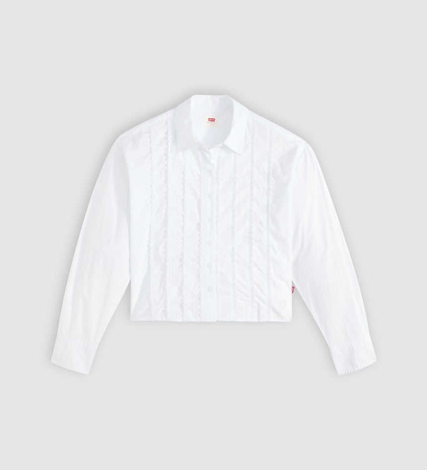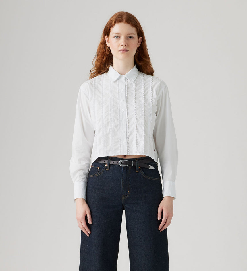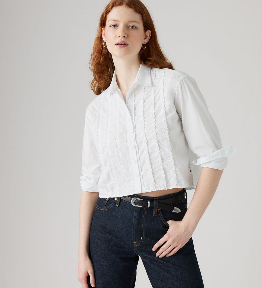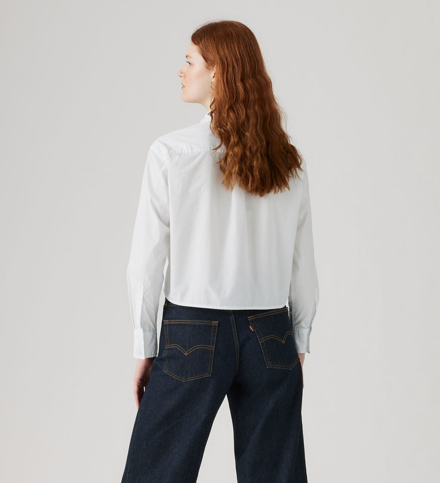 Not your average button-up. This Cropped Harlie Tuxedo Shirt features a sleek collar, a just-right relaxed fit and a button-up front.
