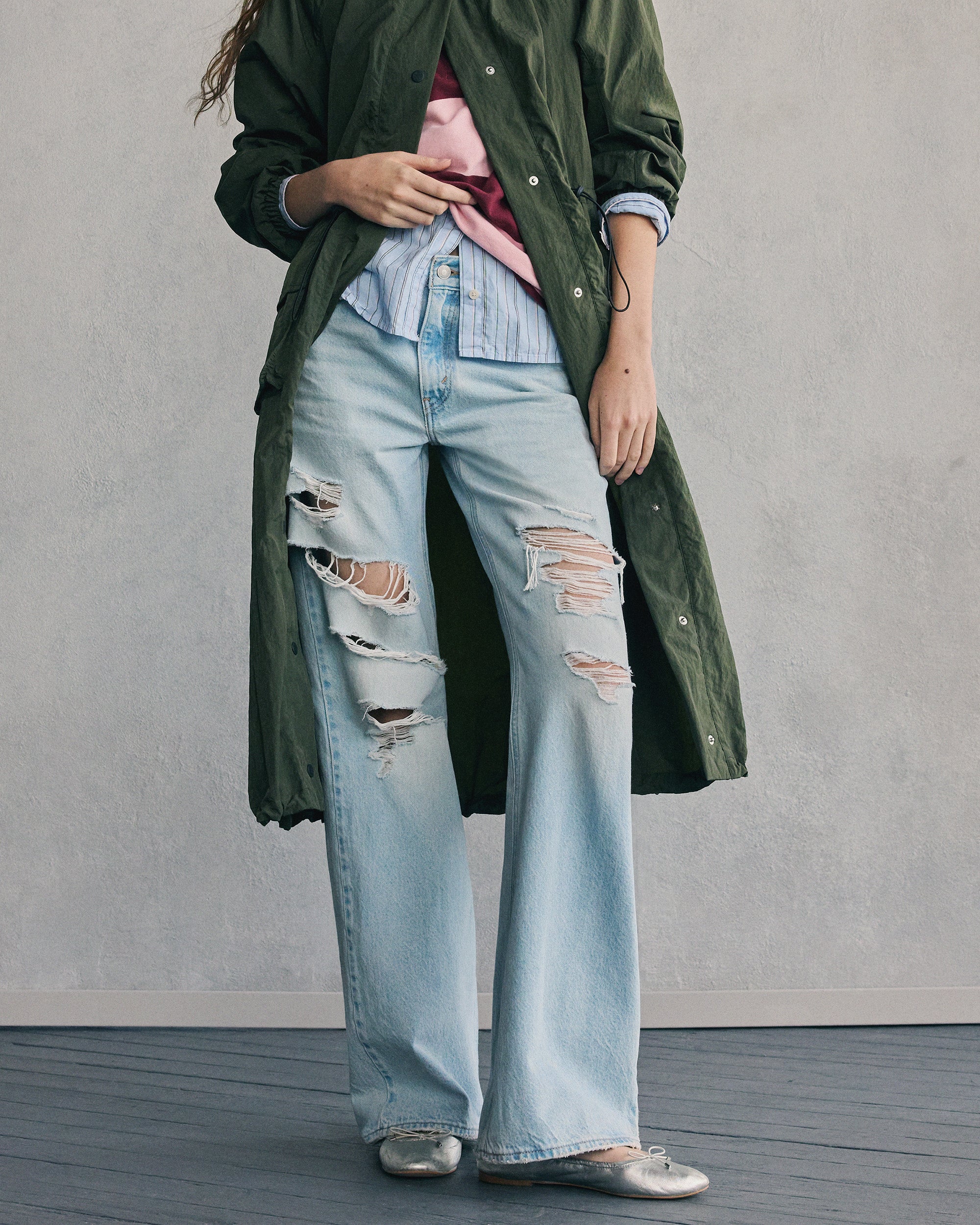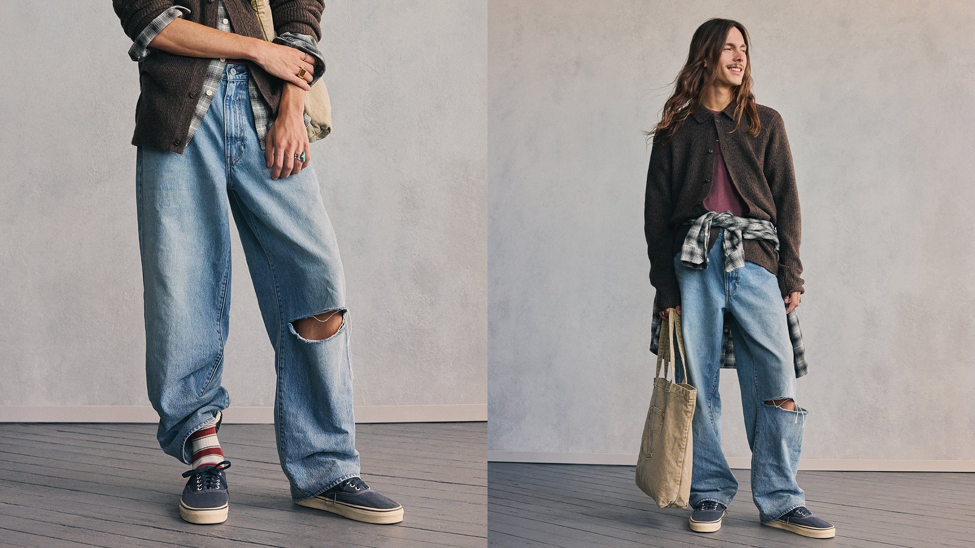 ยีนส์สไตล์ Grunge คู่กับท่อนบนแบบ Preppy ลายจัดจ้านผสานความเรียบง่าย ทั้งดิบและเนี๊ยบในเวลาเดียวกัน เพราะสไตล์ของคุณไม่จำเป็นต้องมีแค่แบบเดียว"